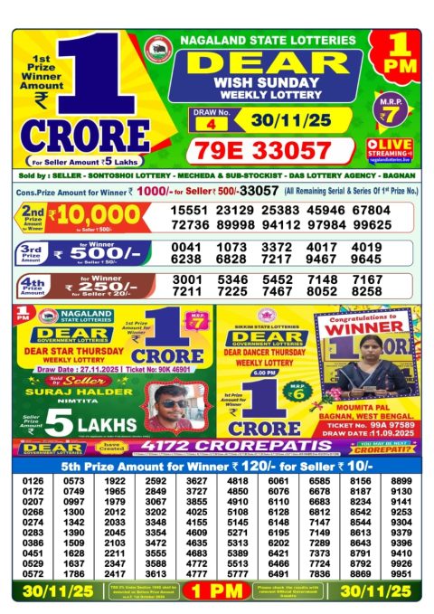 Dear Lottery Result Today 1PM 01-12-25 Live Updates from Nagaland State Lottery If you’re searching for the Dear Lottery Result… read more Dear Lottery Sambad Result 1 PM | Today 01/12/25