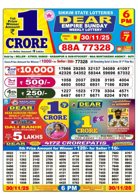 Dear Lottery Result Today 8PM 01-12-25Live Evening Draw by Nagaland State Lottery Looking for the Dear Lottery Result Today 8PM?… read more Dear Lottery Sambad Result 8 PM Today – 01/12/25