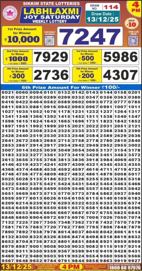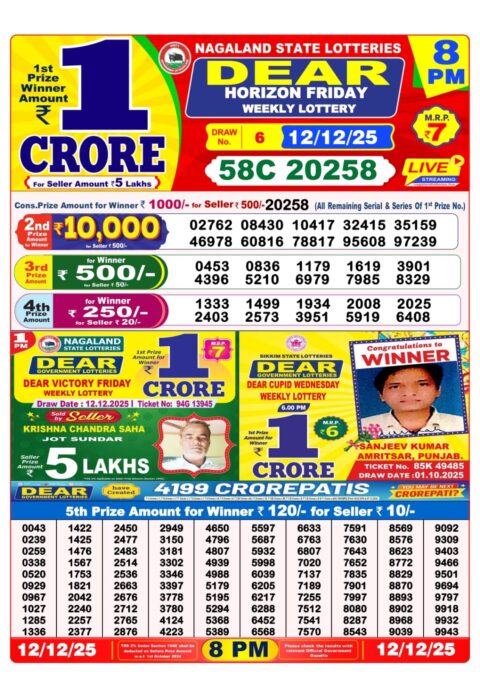 Dear Lottery Sambad Result Today 6 PM 12/12/25