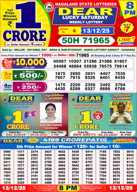 Dear Lottery Sambad Result 8 PM Today – 13/12/25