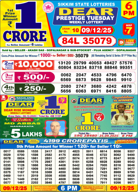 Dear Lottery Sambad Result 8 PM Today – 09/12/25