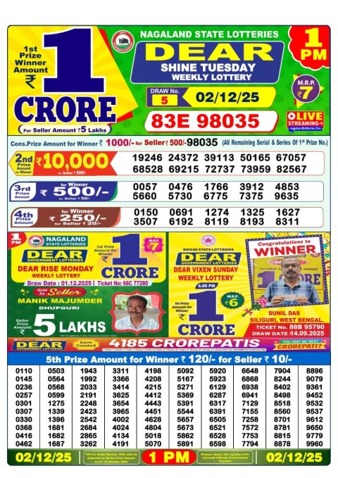 Dear Lottery Sambad Result 1 PM | Today 02/12/25