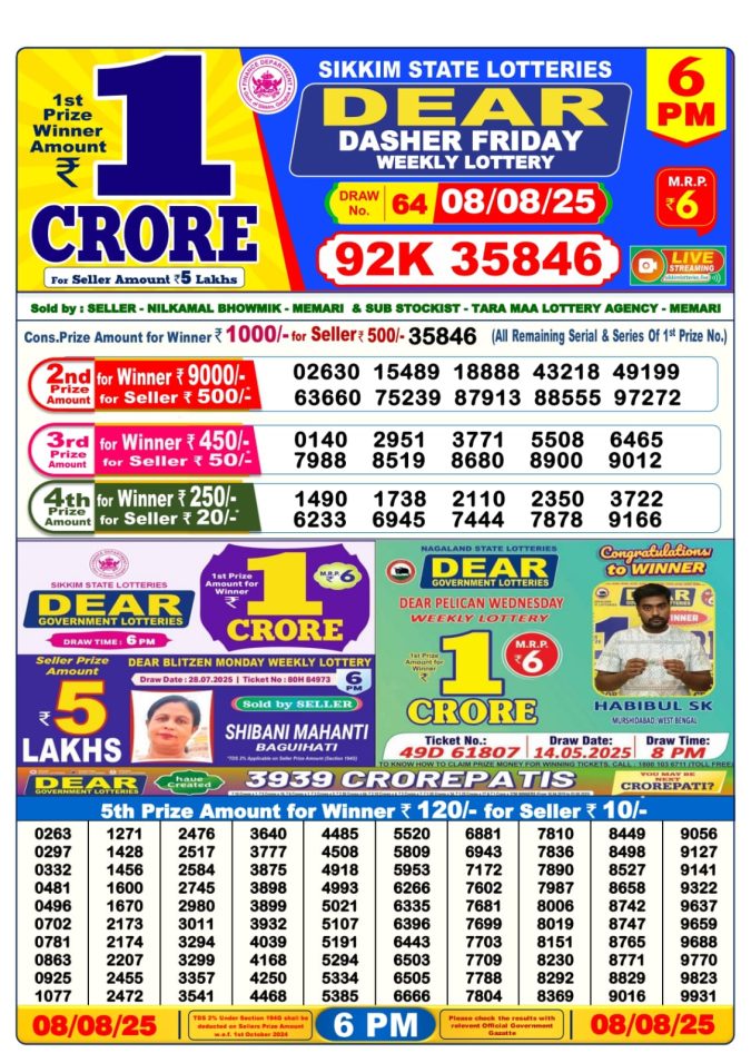 Dear Lottery Result Today 6 PM – 08/08/25 Leave a Comment on Dear Lottery Result Today 6 PM – 08/08/25