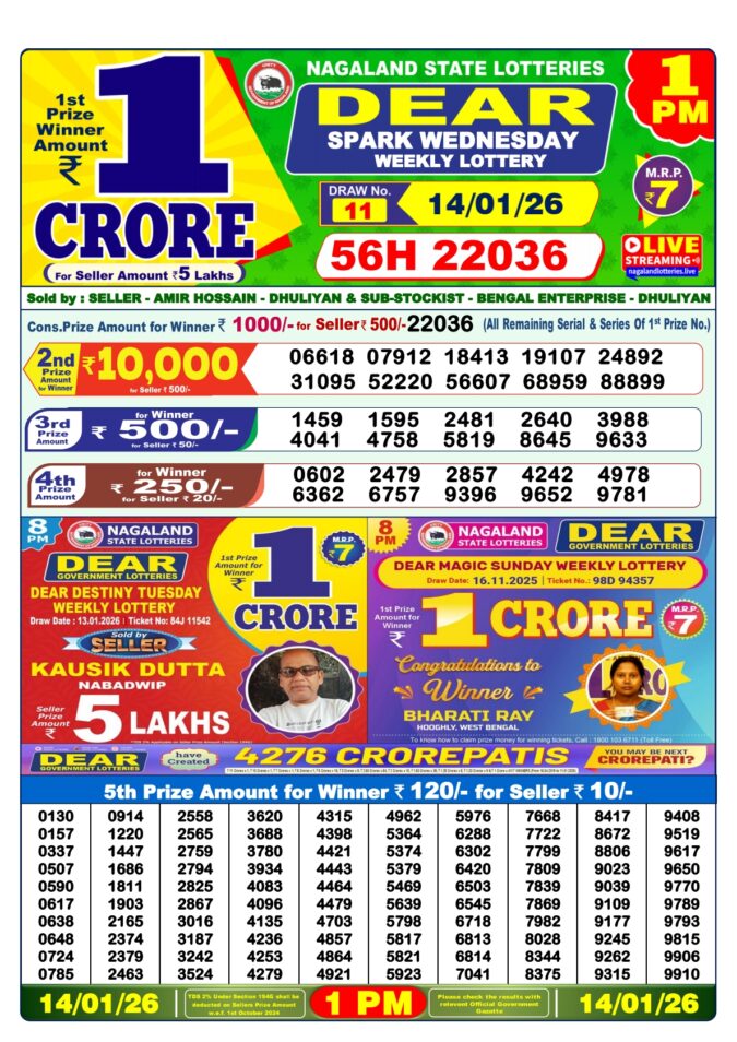 The Dear Lottery Result Today 1PM is more than just a draw , it is part of many people dailyr routine bringing both excitement and opportunity. Stay connected with the latest updates from the Nagaland State Lottery and rely on accurate, fast reporting of every Lottery Sambad Result.