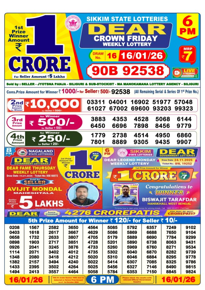 The Dear Lottery 6PM Result continues to be a highlight of the Sikkim State Lottery system. With trusted operations, daily opportunities, and government backing, it offers both excitement and assurance. Bookmark this page to stay updated with each evening’s Dear Day Result as soon as it’s released!