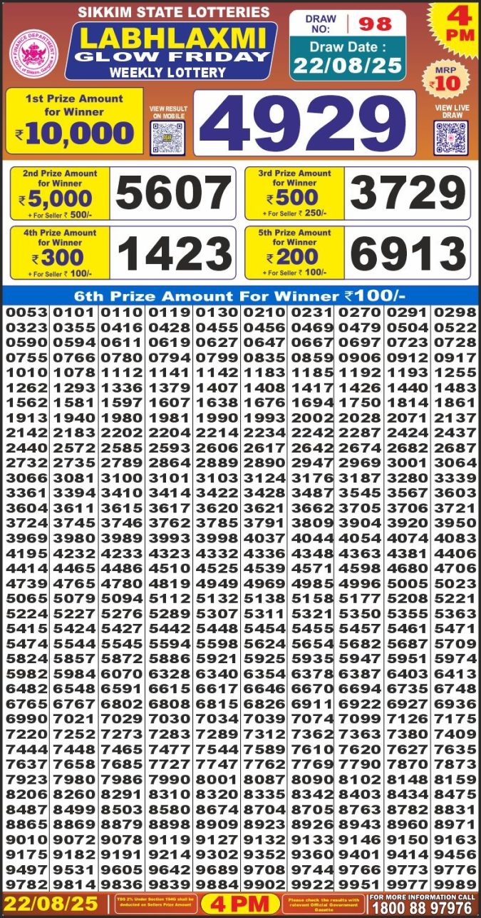 Lottery Sambad Result: Labh Laxmi 4 PM – 22/08/25 Leave a Comment on Lottery Sambad Result: Labh Laxmi 4 PM – 22/08/25