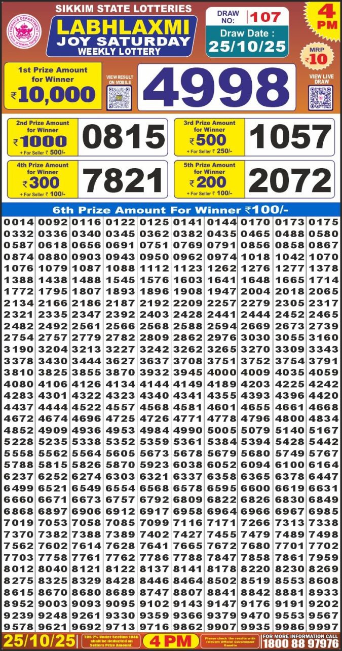 Lottery Sambad Result: Labh Laxmi 4 PM – 25/10/25 Leave a Comment on Lottery Sambad Result: Labh Laxmi 4 PM – 25/10/25