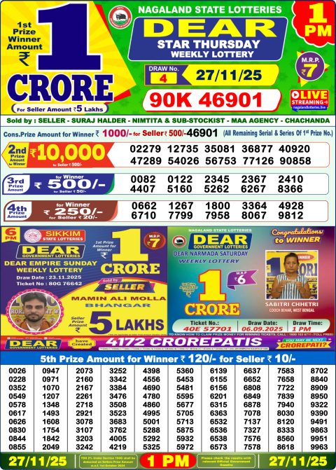 Dear Lottery Sambad Result 1 PM | Today 27/11/25
