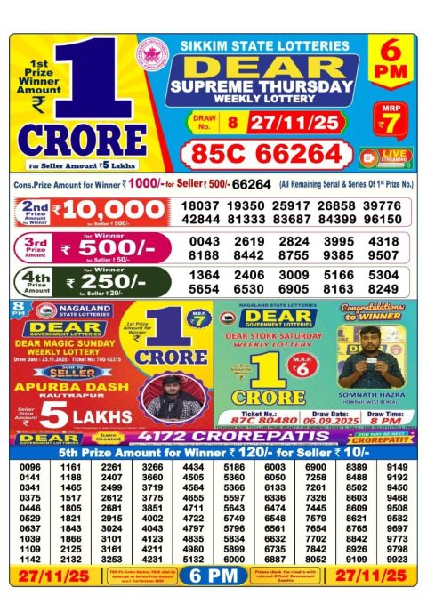 Dear Lottery Sambad Result 8 PM Today – 27/11/25