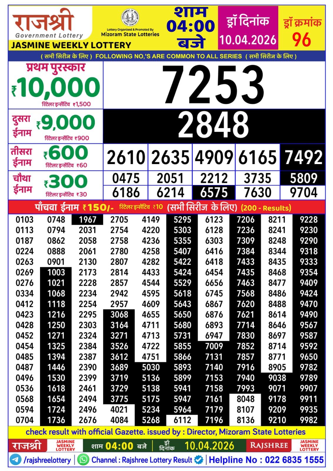 RAJSHREE JASMINE WEEKLY LOTTERY – Mizoram State Lotteries