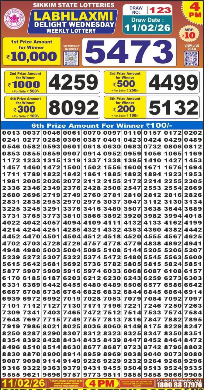 Lottery Ticket Results – Wednesday, 11 February 2026