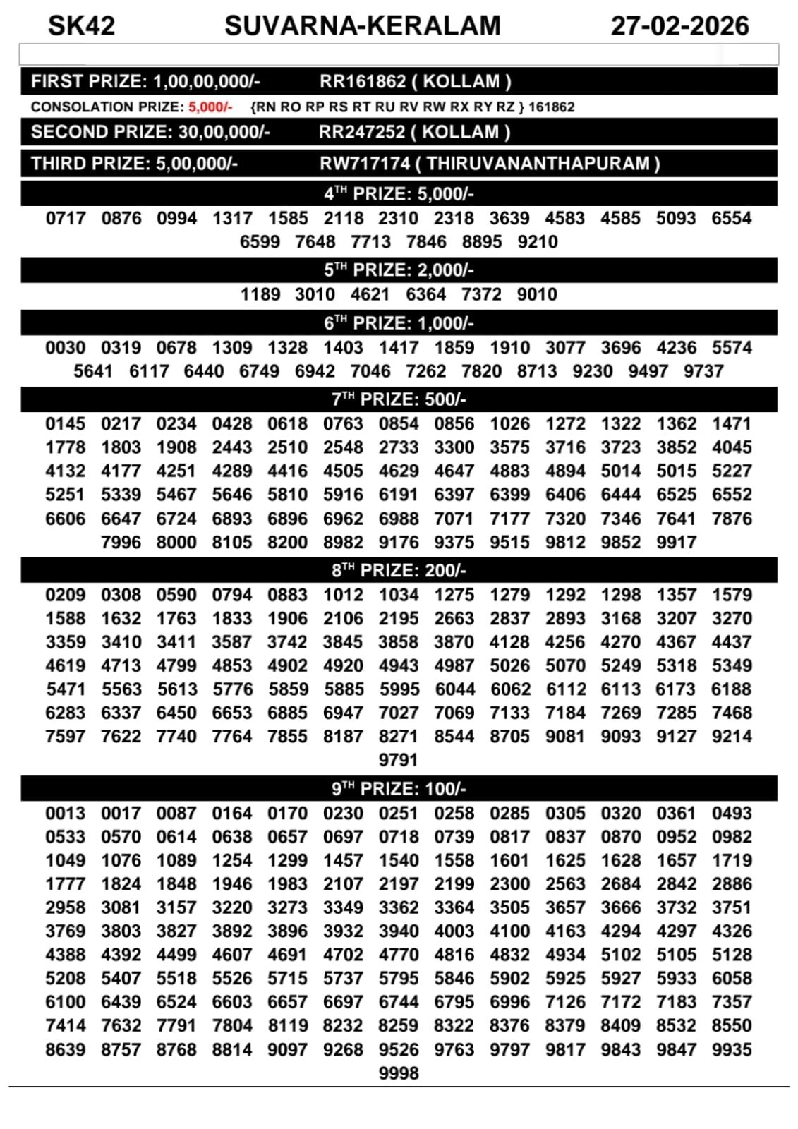 Kerala Lottery Result Today – Suvarna Keralam